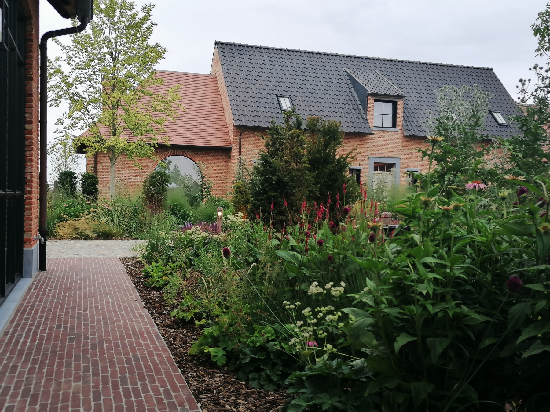 Den Nachtegael, een gloednieuw wijndomein legt niet enkel de lat hoog voor zijn wijnen, maar ook voor zijn kader. Een ultieme beleving van een degutatie begint vanaf de eerste stap op het domein. Uitbundig groen en verfijnde beplantingsborders verwelkomen klanten richting de degustatieterras. De klassieke binnenkoer krijgt een 2.0-versie, en vormt het kloppend hart van de onderneming. Een hoeve wordt domein, een agrarische context wordt een groen pareltje...